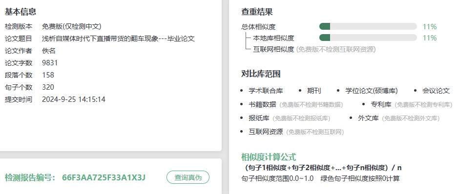 查重说明:「免费版」每天免费1次;每天11:11-11:22全版本查重限时免费,每个账户累计可参与2次。